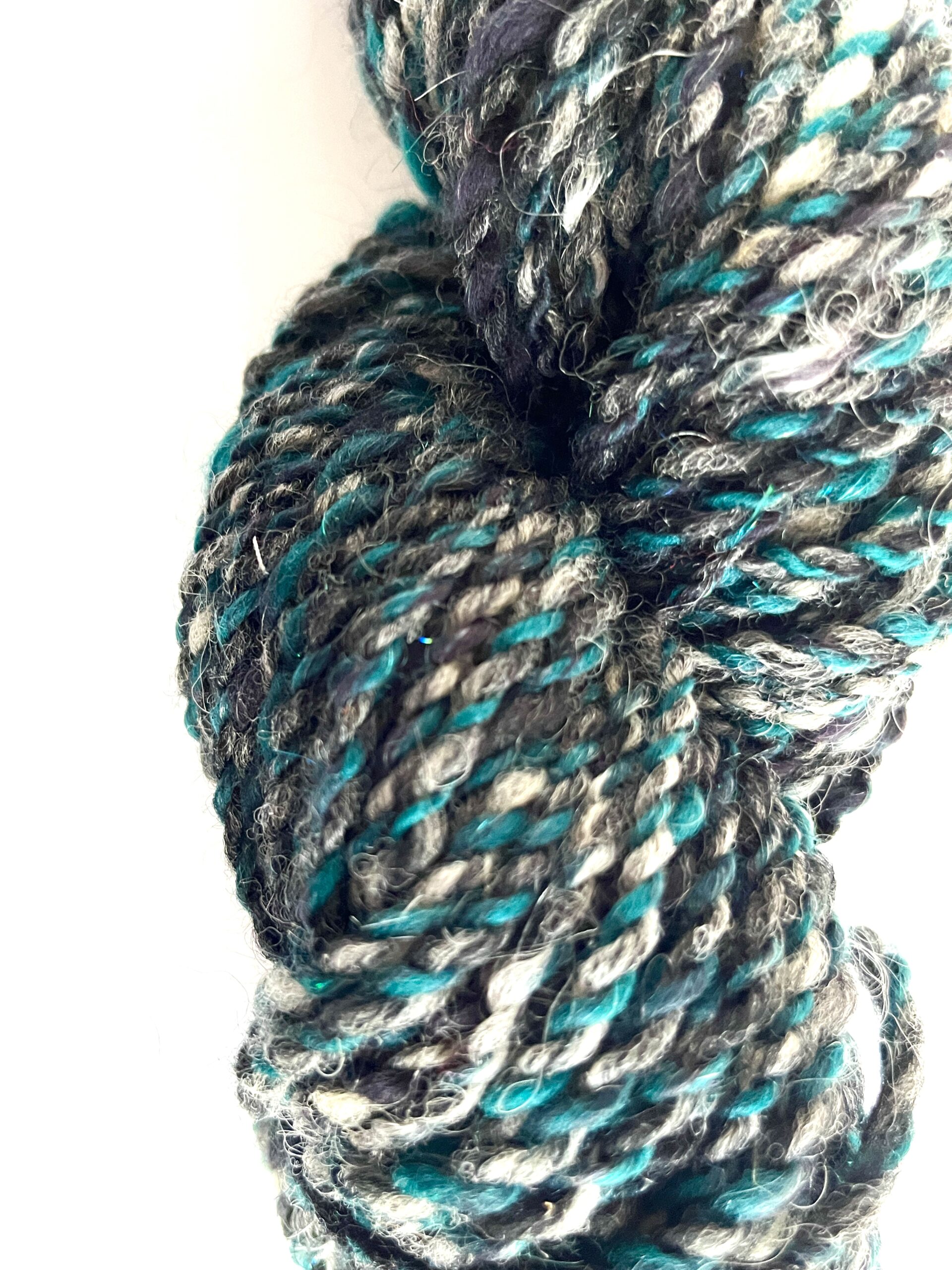 Art Yarn, Weaving Material, Chunky Length: 120 yards Weight: 3.8 ounces Contents: Merino, mohair, Angelina sparkle